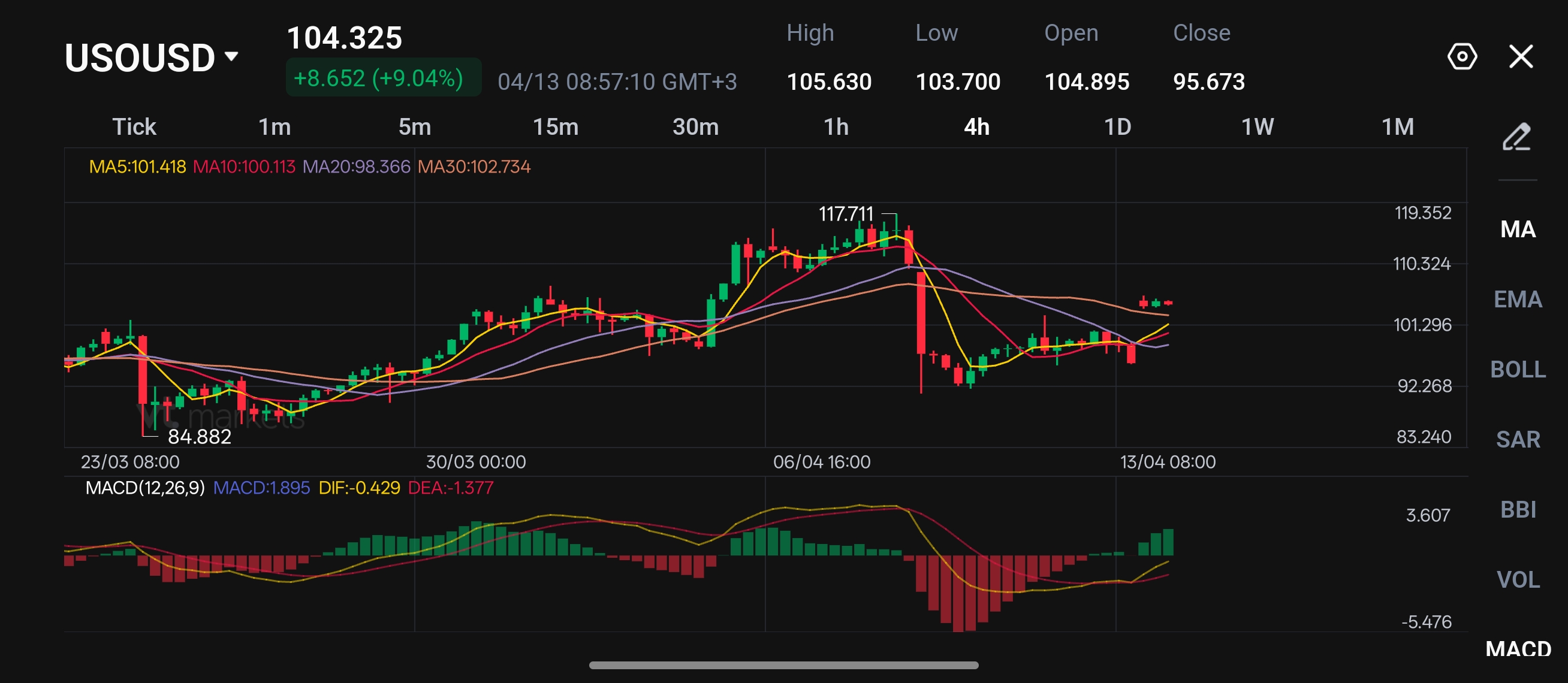 - Le CL-OIL se maintient près de 100 $, la référence se traitant récemment autour de 104 $, en hausse d’environ 7 à 8 % sur la séance.