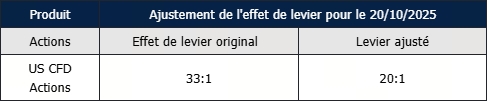 1. L’effet de levier de tous les produits d’actions américaines sera ajusté à 20:1.