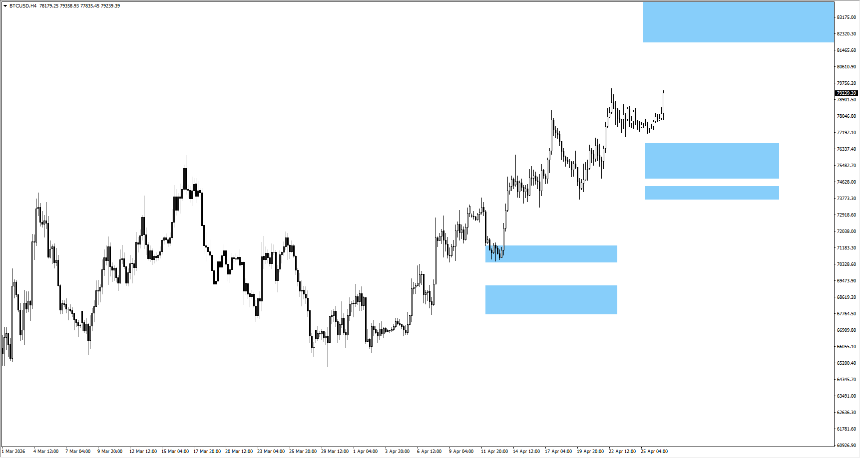 - L’espoir de conditions financières plus souples continue de soutenir BTCUSD, avec un mouvement vers 80 000 avant le PIB.