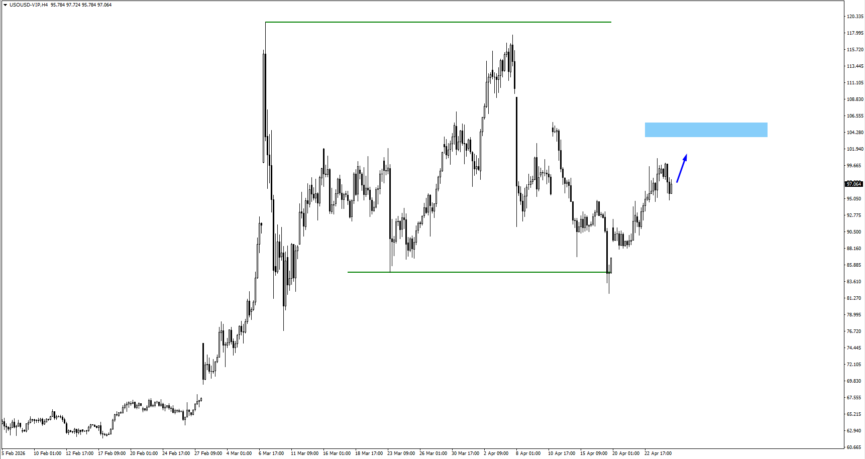La même logique vaut pour BTCUSD. Les cryptos peuvent progresser si l’espoir de conditions financières plus souples reste crédible, mais un pétrole plus cher et un dollar plus fort peuvent vite casser l’élan.
