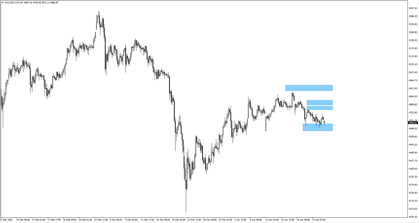 - L’évolution en couloir se poursuit sur XAUUSD après un rebond depuis 4660, un test de 4790, puis un retour à la baisse avant l’indice Core PCE.